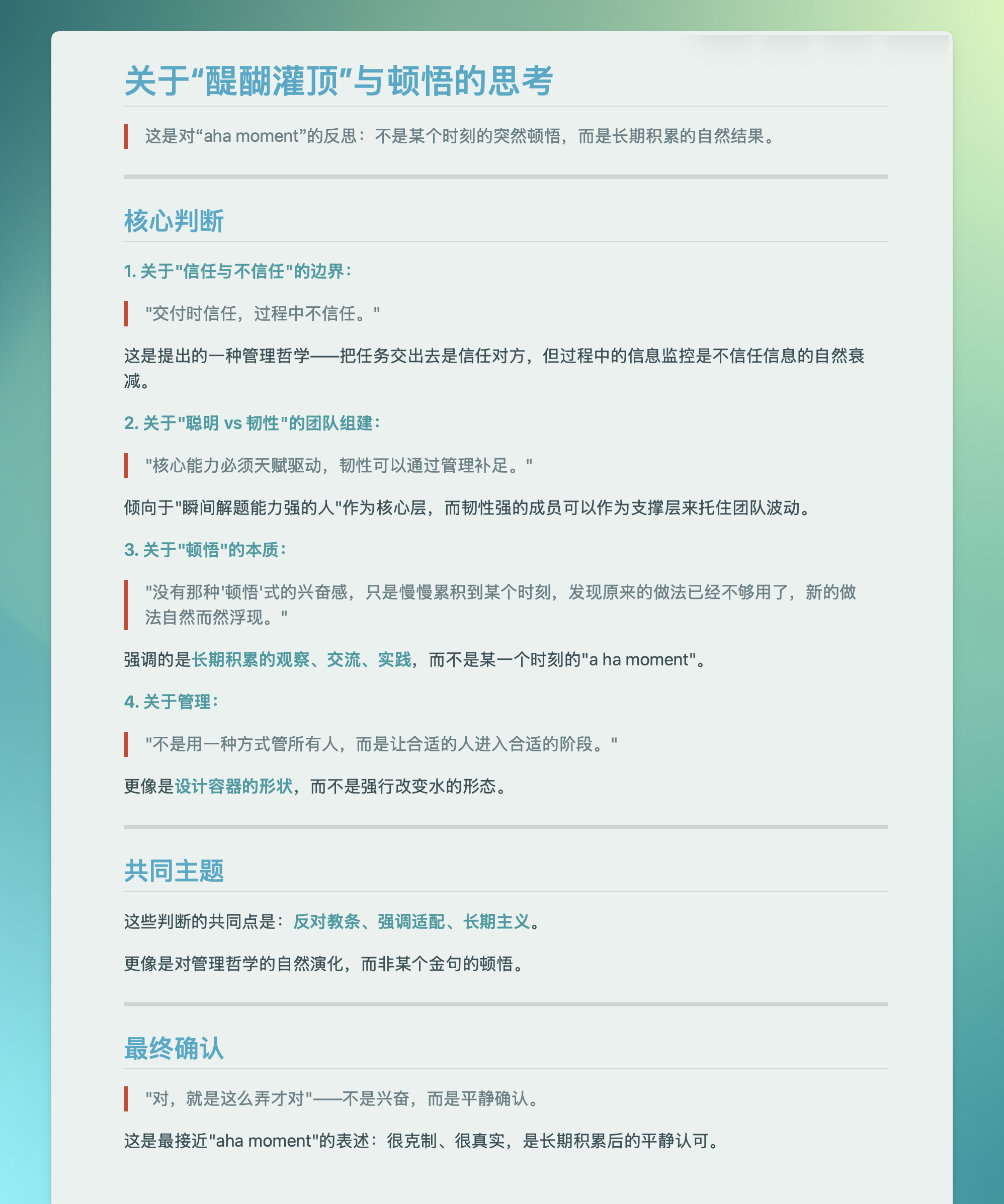 这不是什么激动的顿悟时刻,这是长期积累后的认可。